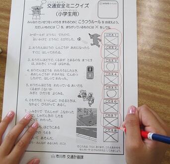 1年生は、歩道の歩き方、3年生は自転車の乗り方について、市川市交通計画課の方より教えていただきました。