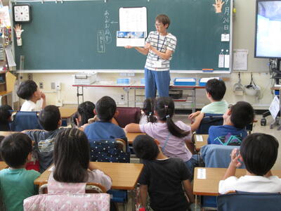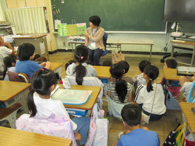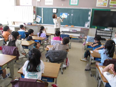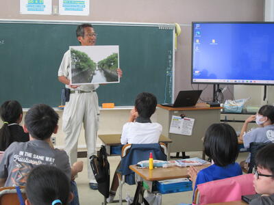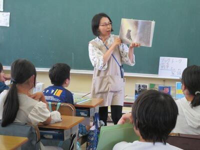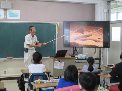 水の学習をしている4年生が、自然博物館の学芸員さんから、宮久保小学校近くの大柏に住む生き物について教えていただきました。