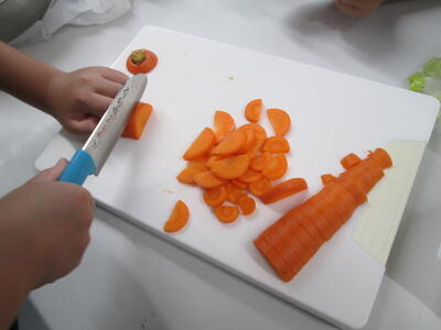 5年生が野菜を組み合わせてゆでる調理にチャレンジしました。