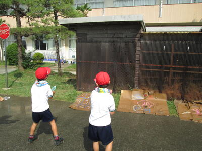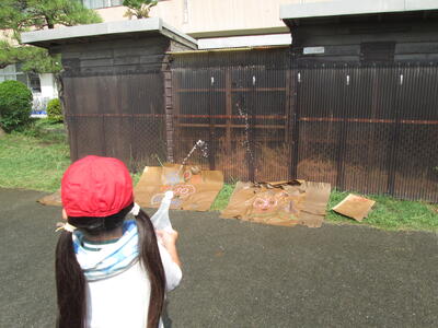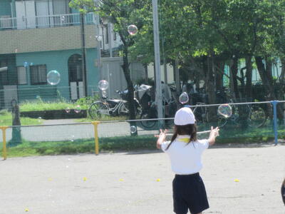 1年生のシャボン玉教室が、やっと開催できました。(悪天候のため、延期が続いていました。)