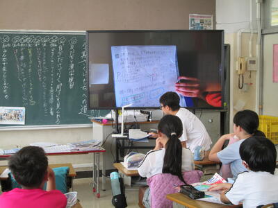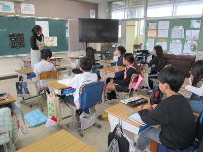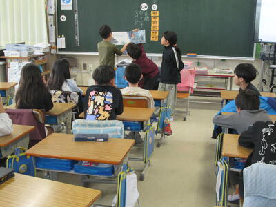 人権擁護委員の方と、いじめについての教材を使って考えました。見ているだけでもいじめになってしまうことに驚きを感じている子もいました。