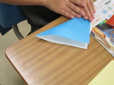 5年生が算数の時間に長方形の紙を折った時の、折り目と長方形の数を調べる学習を行いました。