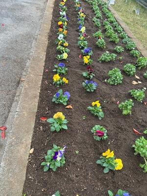 地域の方々が栽培委員の児童と一緒に、花壇に花を植えてくれました。