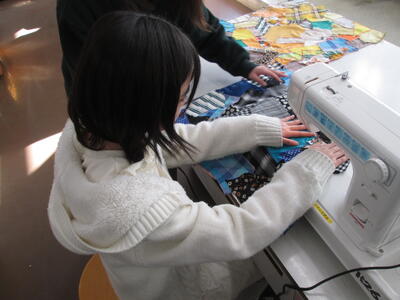 学生さんが見守っていてくださり、みんな縫い上げることができました。