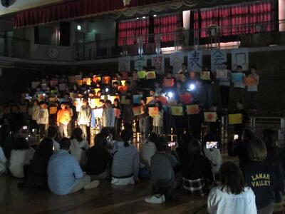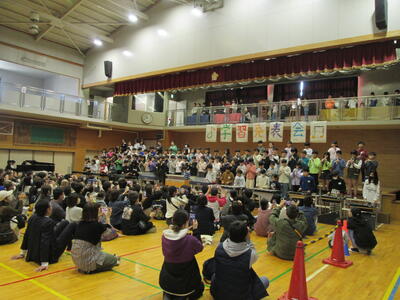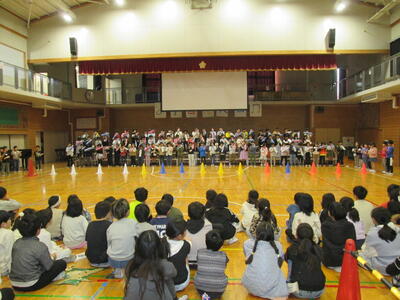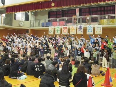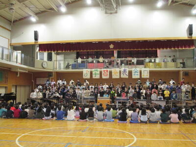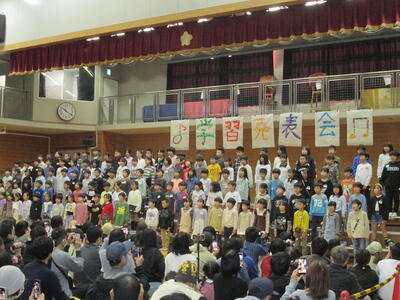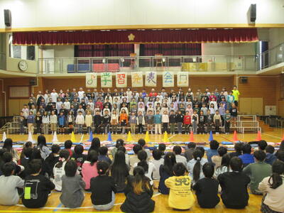 昨日のペア学年への発表と違い、体育館いっぱいの保護者の方に驚きや緊張もあったようですが、それぞれ練習の成果を発表することができました。