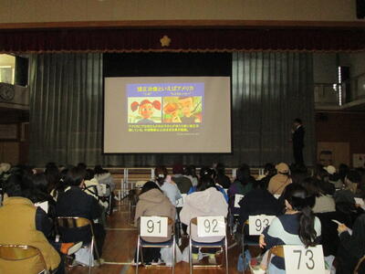 健診の待ち時間を利用して、保護者の方へ学校医の先生に歯について講話をしていただきました。
