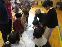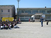 全体で消火訓練を見学した後、3年生は起震車体験、6年生は煙中脱出訓練、4・5年生は宮久保小が避難所になった際の体育館の様子を、防災拠点協議会の方の御協力のもと、見学しました