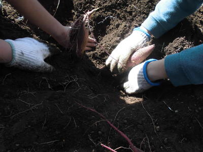 みんなで力を合わせ、掘り残しが無いよう土の中を調べていました。