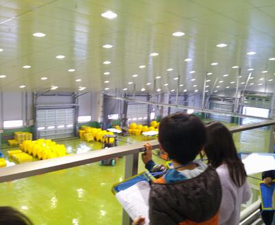 ヤマサ醤油工場では、醤油ができるまでの過程を、実物や映像などから学ぶことができました。