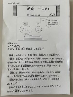 ごはん・牛乳・いわしのピリ辛ソース・節分すまし汁・ハムサラダ・福豆