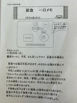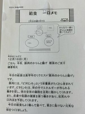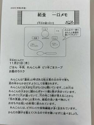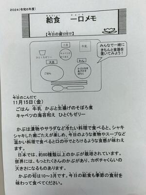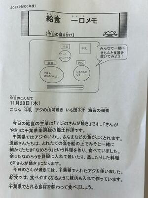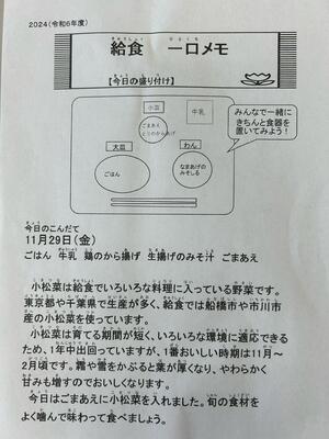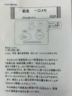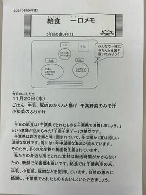 私たちの住んでいる千葉県ではたくさんの農作物が収穫できるのだなと改めて実感できる給食です。