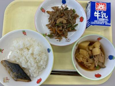 ごはん・牛乳・鰆の西京焼き・肉じゃが・こんにゃくのきんぴら