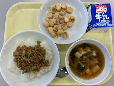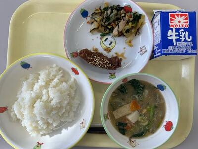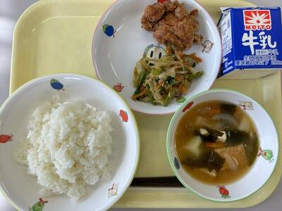 ごはん・牛乳・鶏のから揚げ・生揚げのみそ汁・ごまあえ