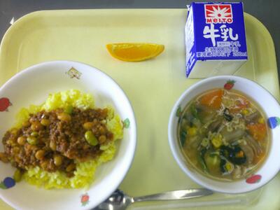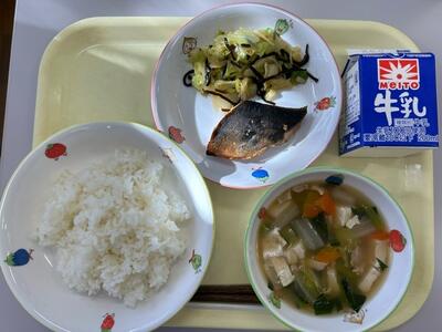 ごはん・牛乳・さばのカレー焼き・みそけんちん汁・納豆和え