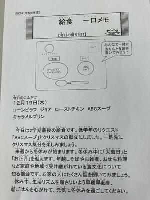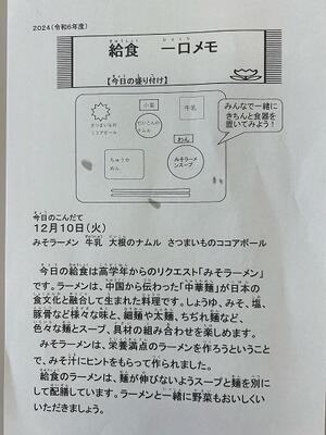 高学年のリクエスト給食のみそラーメンは、スープの濃さが丁度よく、体が温まります。
