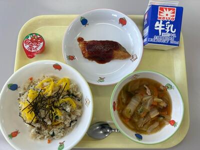 本日は中華風献立です。ご飯は、和風の五目ご飯とはまたちがった味で、今日のおかずによく合います。