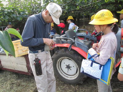 3年生が学区内にある村越農園さんへ梨の収穫体験に行きました。