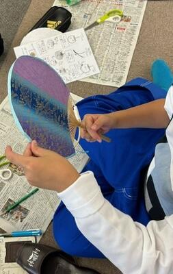 2日目は房州うちわ作りからスタート。それぞれが自分の気に入った柄を選び、慎重に作業を進めていきました。