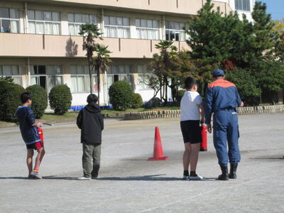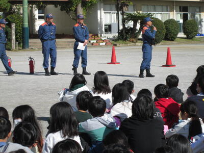 また、代表者に消火訓練を全校児童の前で実施してもらいました。