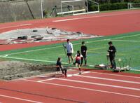 ウォーミングアップで体を温めるとともに、初めて走る競技場のタータンに走りの感覚を合わせていきます。