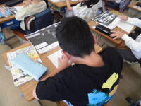 3年生は道徳と社会科の梨農家の見学のまとめをタブレットを使って行っていました。