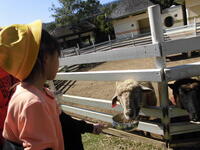 晴天に恵まれました。餌やり体験では、初めはおっかなびっくりの手つきだった子も動物に慣れてかわいがって、餌やりをしました。