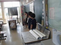 こちらのクラスは、朝顔のつるでリースづくり みんな一生懸命です。 中学生がよくお世話をしてくれました。