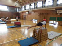 跳び箱運動 高い段数も上手に跳べています。抱え込み跳びも挑戦中です。