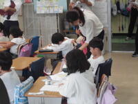 第三中学校の2年生が職場体験で1年生の学習に参加しました