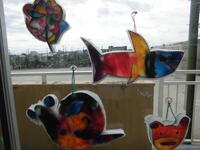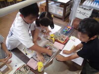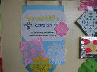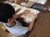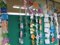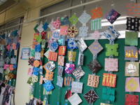 図工の作品が飾られています。光の具合でよりよくみえます。 社会化の授業では、スパーマーケットの仕組みを学習しています。