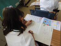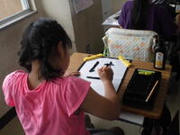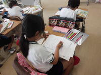 雨の日の様子を表す言葉を学習していました。 こちらのクラス漢字の学習です。上手に書き取っています。