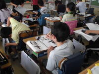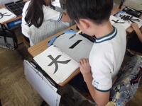 3年生から毛筆の学習が始まりました。はじめは横書の練習です。上手にできたかな?