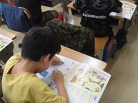 生活科「町探検」のまとめです。発表まであとわずかでしょうか。付箋を上手に使います。