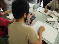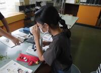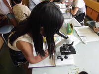 理科で生き物の学習をしています。昆虫は頭胸腹の3通で構成されていることや胸から足が3対(6本)出ていることを観察を通して学習します。