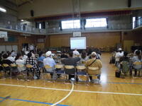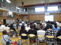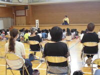 5年生は自然教室の説明会を兼ねて、体育館で行いました。