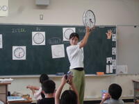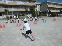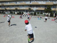 1年生は、はじめに説明した後、思い思い取り組みました。後半はみんな上手に飛ばすことができました。