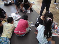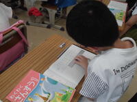 結構たくさんいます。 絵本や図鑑、とらんぷなどもありました。 本を読んでいますが、まずは宿題から終わらせるようです。