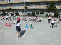 体育で、「しっぽとり」を行うようです。 導入を対戦形式で行っていました。