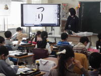こちらのクラスは教頭先生と書写「毛筆 『つり』」です。                   こちらのクラスは避難訓練が雨で中止になったため