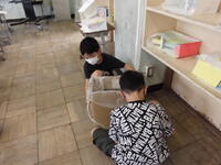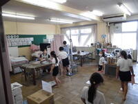 昨日とは違うクラスが、手縫いに挑戦。玉結びする際に、思ったより糸が短くなって苦戦する子が・・・