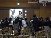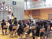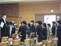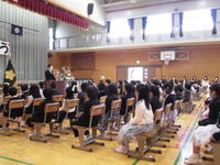 きちんと話を聞くことができました。 礼も合わせて一緒にできました。1年生96名の入学です。