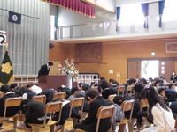 きちんと話を聞くことができました。 礼も合わせて一緒にできました。1年生96名の入学です。