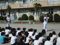 4年生は、先日マリーンズの方たちに教わったベースボール型の授業にとりくんでいました。