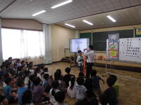 お話サラダさんの読み聞かせもはじまりました。今学期から2学年同時に行ってくださいます。ボランティアの皆さんですが、夏休み前には、