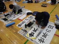 12月15日 今日は5,6年生が書き初めにチャレンジです。
