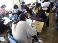 こちらのクラスの6年生は 昨日 書初めで書いたものを、台紙に丁寧に張っています。