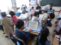 1年生 音楽 鍵盤ハーモニカにもずいぶん慣れてきました。指使いを友達同士で教えています。