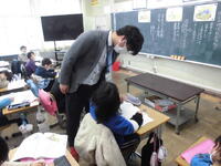 3年生は初めての書初めなので、講師の先生を招いての練習です。