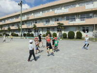 業間休みの様子 宮久保小の子どもたちは外dふぇよく遊んでいる印象があります。 子どもたちの活動が秋空に映えています。