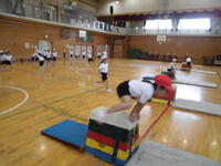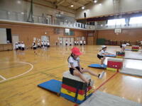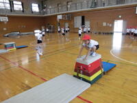 跳び乗ったり、跳び越したりして、学習に取り組んでいます。怖っている子が少ないので、すぐに上達しそうです。